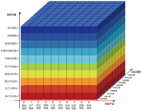 Y轴代表十纵咨询服务对象:采矿与冶金行业、化工与原料行业、食品 与包装行业、家居与休闲行业、电子与电器行业、机械与设备行业、交 通与运输设备行业、能源与建筑行业、传统服务业、现代服务业十个大行业。